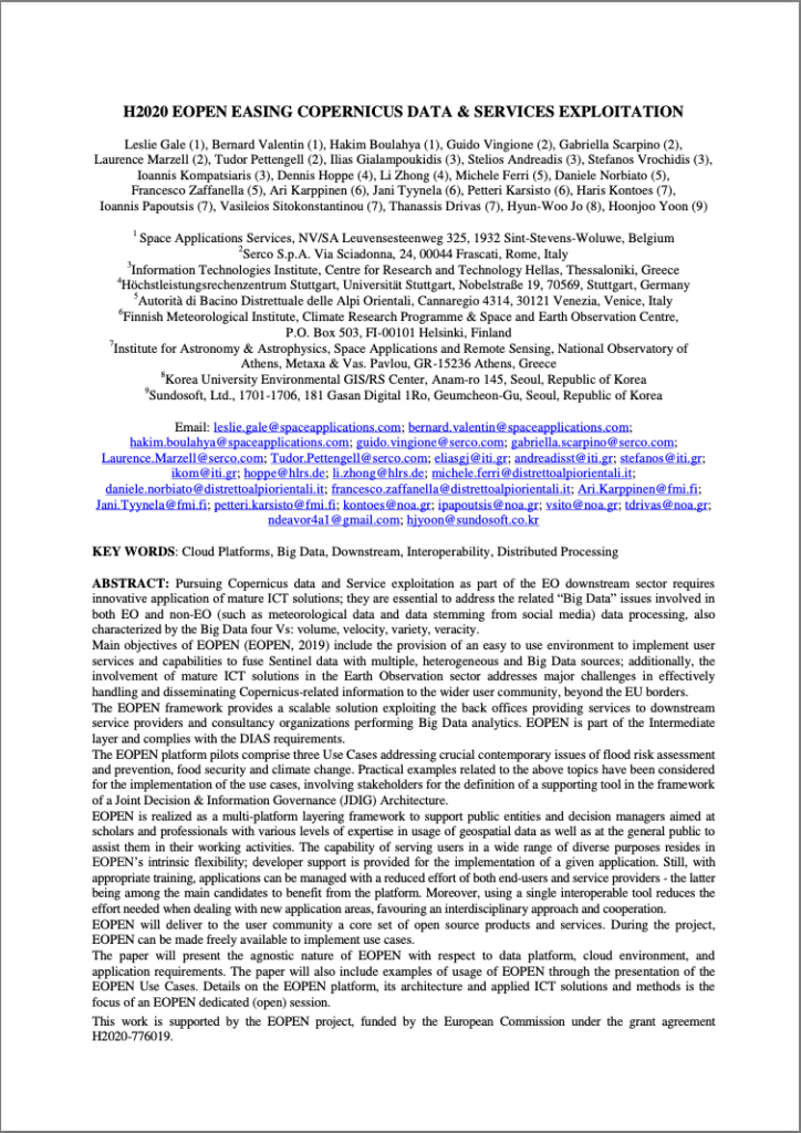 H2020 EOPEN EASING COPERNICUS DATA & SERVICES EXPLOITATION
